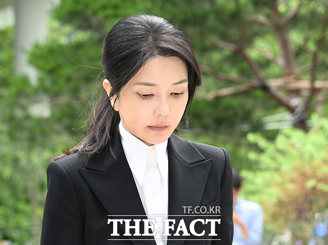 [더팩트ㅣ박헌우 기자] 자본시장법 위반 등 혐의를 받는 김건희 씨가 6일 오전 서울 종로구 KT광화문빌딩 웨스트에 마련된 민중기 특검 사무실에 출석하고 있다.