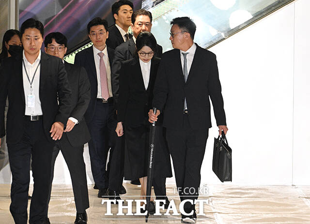 [더팩트ㅣ박헌우 기자] 자본시장법 위반 등 혐의를 받는 김건희 씨가 6일 오후 서울 종로구 KT광화문빌딩 웨스트에 마련된 민중기 특검 사무실에서 조사를 마치고 특검 사무실을 나서고 있다.