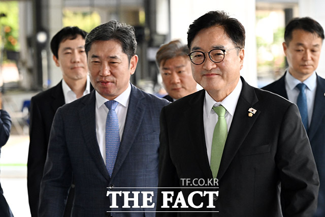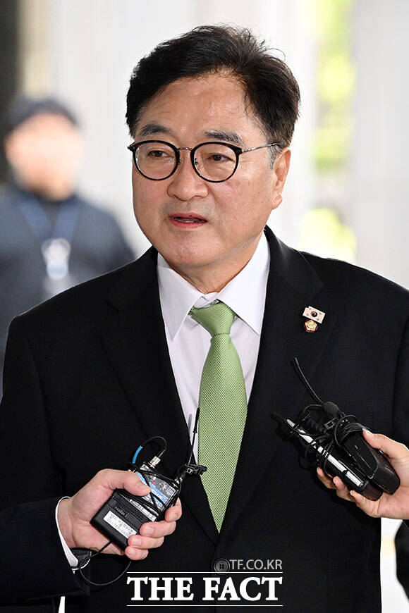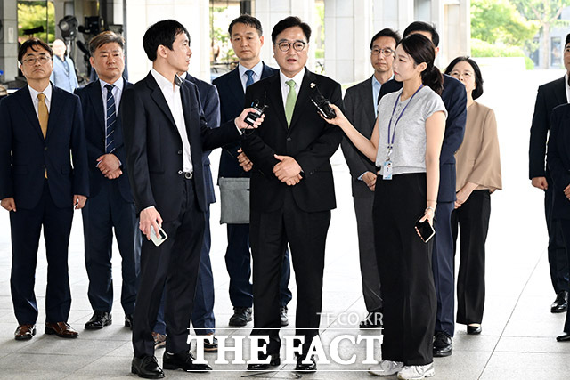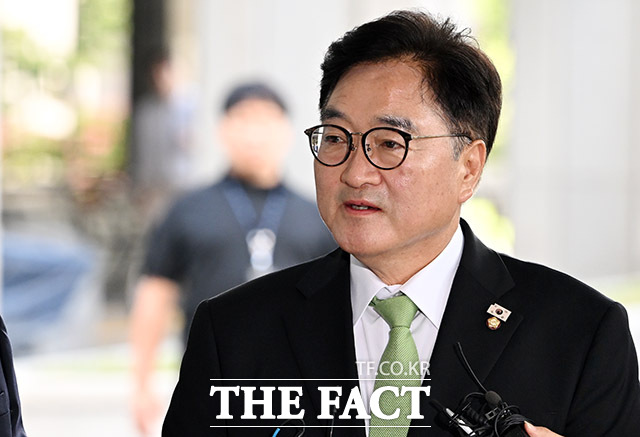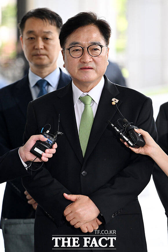 [더팩트ㅣ남용희 기자] 우원식 국회의장이 7일 오전 서울 서초구 서울고등검찰청 청사에 마련된 내란 특검(특별검사 조은석) 사무실에 참고인 신분으로 출석하며 입장을 밝히고 있다.