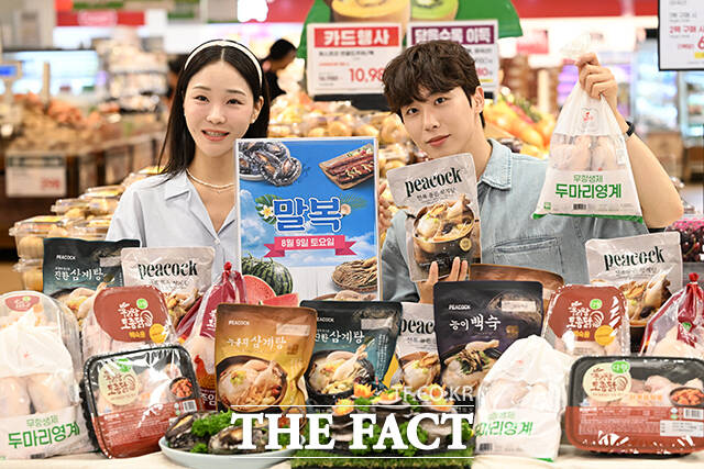 [더팩트ㅣ서예원 기자] 이마트가 삼복더위의 마지막을 장식할 말복 행사를 한다고 밝힌 7일 오전 서울 용산구 이마트 용산점에서 모델들이 행사 상품을 선보이고 있다.