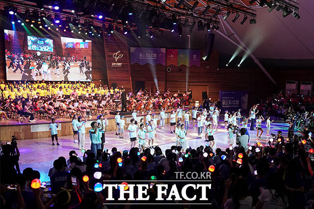 [더팩트ㅣ서예원 기자] 대구·무주 꿈의 오케스트라와 송파·연수·오산 꿈의 무용단이 7일 강원도 평창 알펜시아리조트 뮤직텐트에서 열린 2025 꿈의 예술단 합동캠프 '꿈의 페스티벌'에서 주제가 '나의 내일을' 오케스트라 버전에 맞춰 공연을 펼치고 있다.