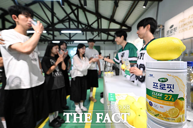[더팩트ㅣ서예원 기자] 매일유업 자회사 매일헬스뉴트리션의 스포츠 뉴트리션 브랜드 셀렉스의 '셀렉스 프로핏' 팝업행사가 10일 오전 서울 성동구 연무장길에서 열린 가운데, 모델들이 시음하고 있다.