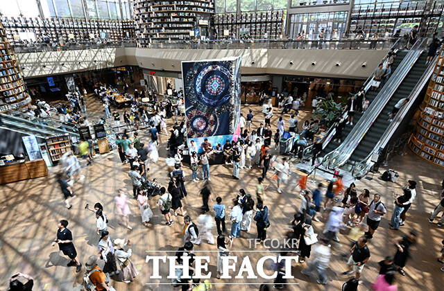 [더팩트ㅣ서예원 기자] 서울 등 내륙에 33도의 무더위가 찾아온 10일 오후 서울 강남구 코엑스 별마당도서관이 관광객과 시민들로 북적이고 있다.