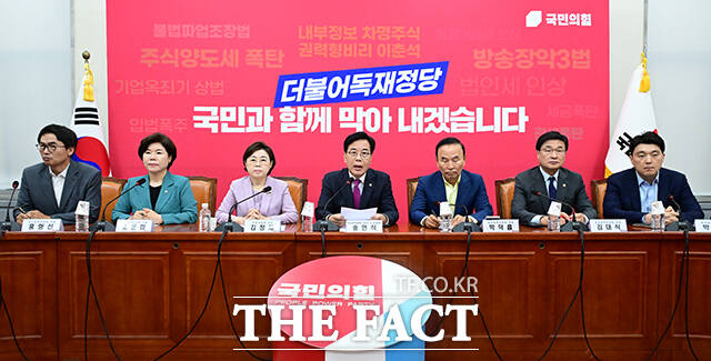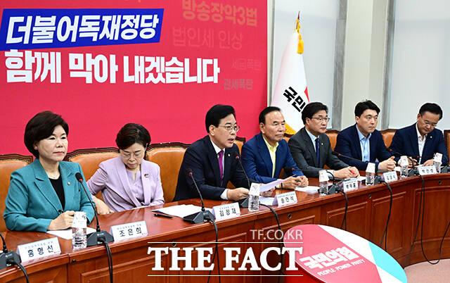 송언석 비상대책위원장은 이날 회의에서 대구·경북권 합동연설회에서 소란을 피운 전한길 씨를 겨냥해 "소란을 피우면서 당의 명예를 실추 시키고 당의 분열과 갈등을 조장하는 선동행위는 결코 용납될 수 없다"고 말했다.