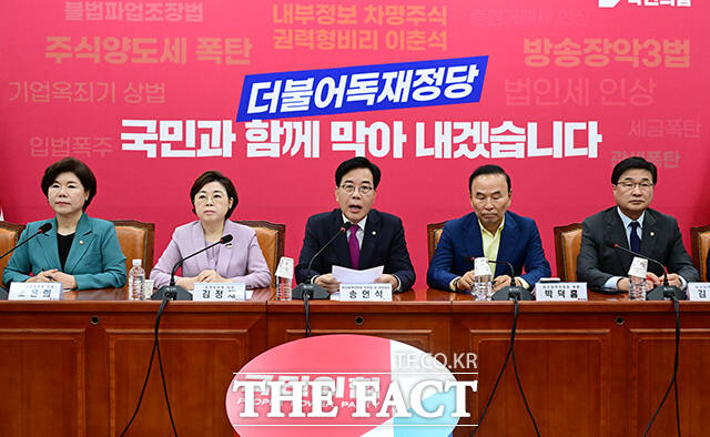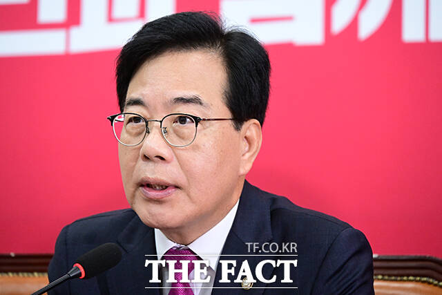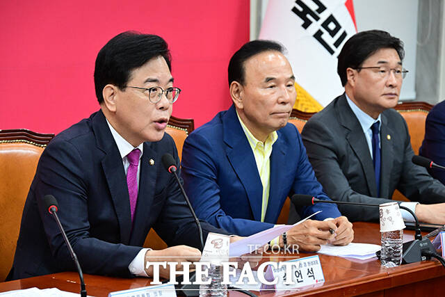 [더팩트ㅣ국회=남윤호 기자] 송언석 국민의힘 비상대책위원장 겸 원내대표가 11일 오전 서울 여의도 국회에서 열린 비상대책위원회의에서 모두발언을 하고 있다.