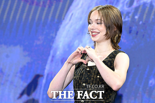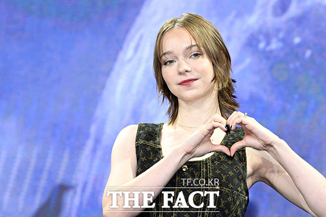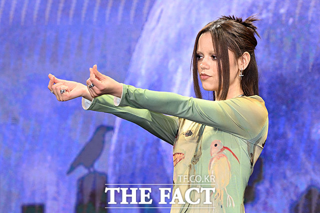 [더팩트ㅣ남용희 기자] 에마 마이어스(왼쪽)과 제나 오르테가가 11일 오전 서울 종로구 포시즌스 호텔 서울에서 열린 넷플릭스 시리즈 '웬즈데이 시즌2' 기자간담회에 참석해 포즈를 취하고 있다.