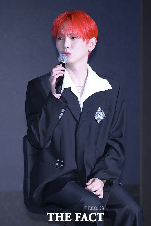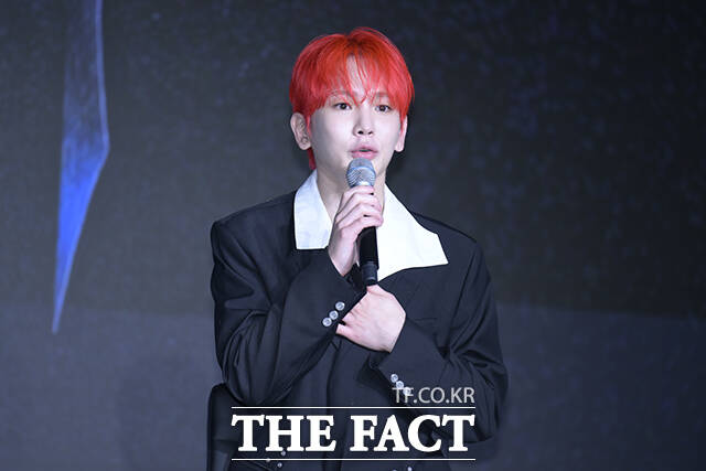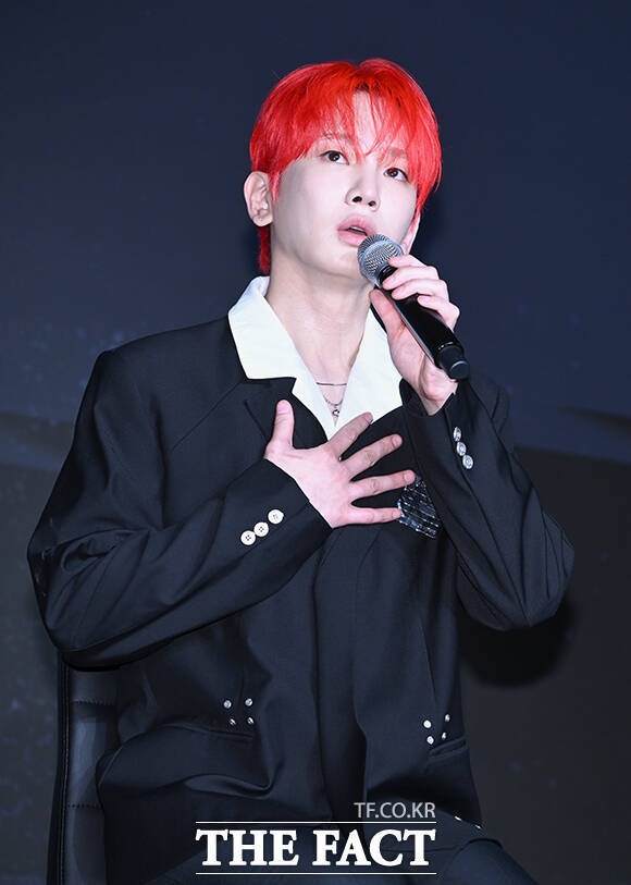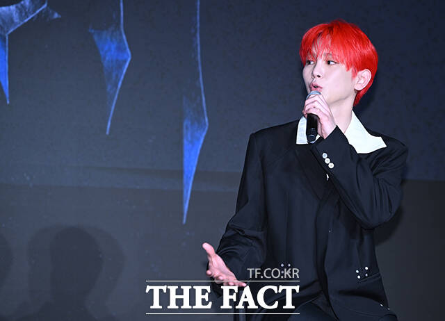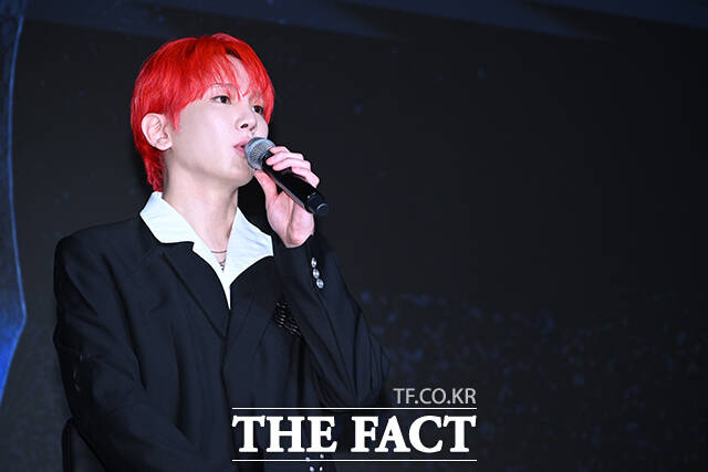 [더팩트ㅣ장윤석 기자] 그룹 샤이니의 키가 11일 오후 서울 광진구 풀만 앰배서더 서울 이스트폴 브로드웨이에서 열린 정규 3집 '헌터(HUNTER)' 발매 기념 기자 간담회 참석해 취재진의 질문에 답변하고 있다.