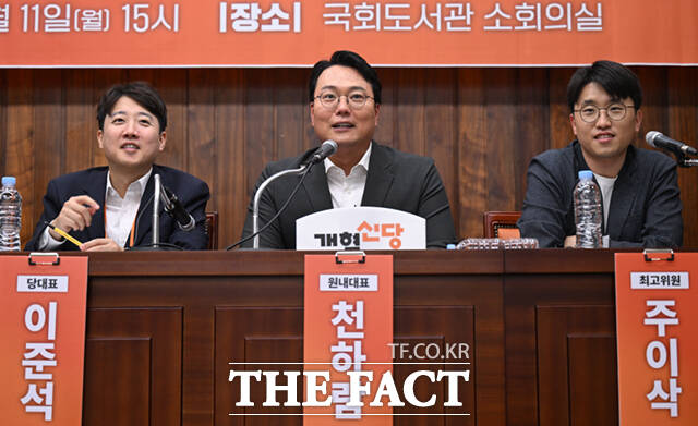 [더팩트ㅣ국회=이새롬 기자] 이준석 개혁신당 대표가 11일 오후 서울 국회도서관 소회의실에서 열린 3기 지도부 언론인 연찬회에 참석해 인사말을 하고 있다.