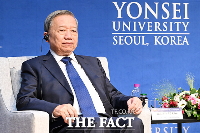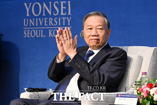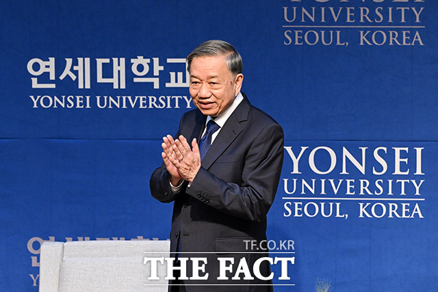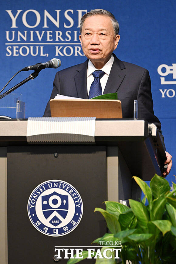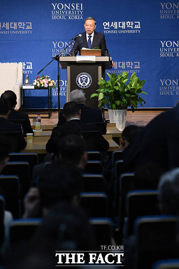 연세대 찾아 특별강연 하는 또 럼 베트남 공산당 서기장.