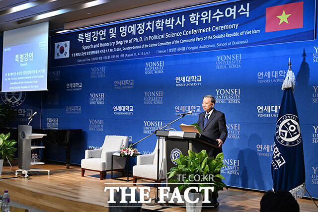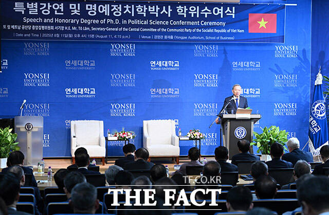 '국빈 방문' 또 럼 서기장, 연세대 명예정치학박사 학위 수여 [TF사진관]