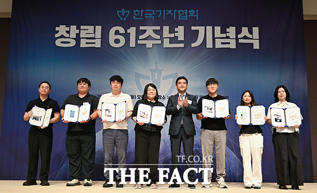 [더팩트ㅣ서예원 기자] 이호재 한국사진기자협회 회장(오른쪽에서 네번째)이 12일 서울 중구 한국프레스센터 국제회의장에서 열린 '한국기자협회 창립 61주년 기념식'에 참석해 '한국기자협회와 나' 사진 공모전 장려상을 시상한 뒤 수상자들과 기념촬영을 하고 있다.yennie@tf.co.kr사진영상기획부 photo@tf.co.kr