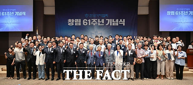 [더팩트ㅣ서예원 기자] '한국기자협회 창립 61주년 기념식'이 12일 서울 중구 한국프레스센터 국제회의장에서 열린 가운데 참석자들이 기념촬영을 하고 있다.yennie@tf.co.kr사진영상기획부 photo@tf.co.kr