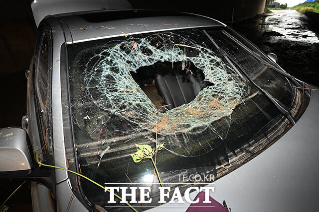 [더팩트ㅣ고양=박헌우 기자] 중부지방을 중심으로 호우특보가 내려진 13일 오후 경기 고양시 덕양구 창릉천 일대에 주차된 차량이 침수돼 있다.
