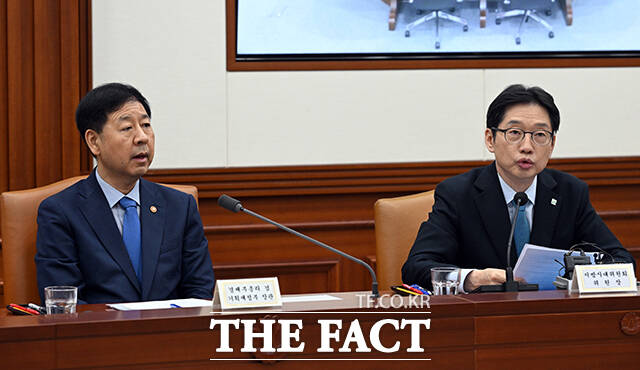 [더팩트ㅣ임영무 기자] 김경수 지방시대위원장(오른쪽)이 14일 오전 서울 종로구 정부서울청사에서 열린 경제관계장관회의에 참석해 발언을 하고 있다.