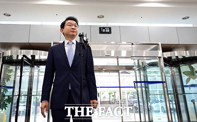 [더팩트ㅣ임영무 기자] 이억원 금융위원장 후보자가 14일 오전 서울 중구 청계천로 예금보험공사에 마련된 인사청문 준비사무실로 첫 출근해 소감을 밝히고 있다.