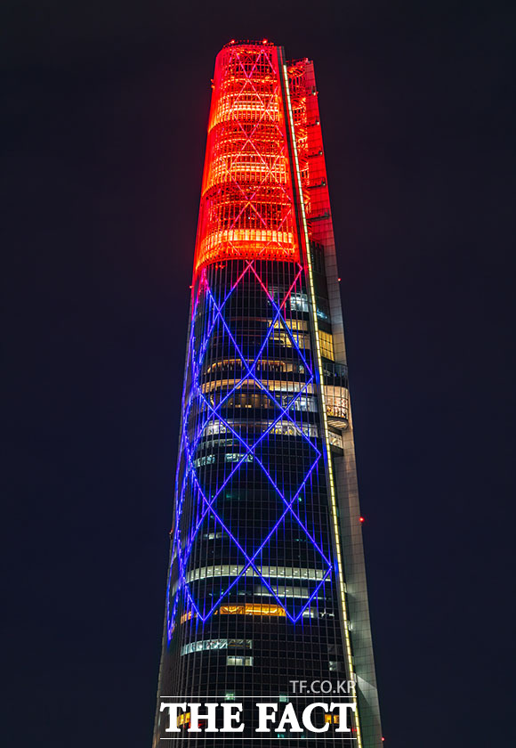 롯데물산, 광복 80주년 맞아 롯데월드타워에 미디어파사드 [TF사진관]