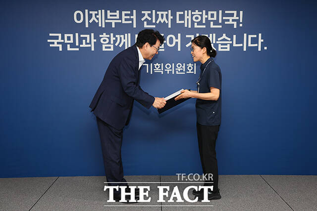 이 위원장은 "이번 국정기획위원회 여러분들은 끝까지 만났으면 좋겠다. 그러려면 이번 정부의 대통령 지지도가 지금처럼 유지됐으면 좋겠다"라며 "처음에 49.7%로 들어왔지만 나갈 때는 50%를 조금이라도 넘기고 나갔으면 한다"고 전했다.