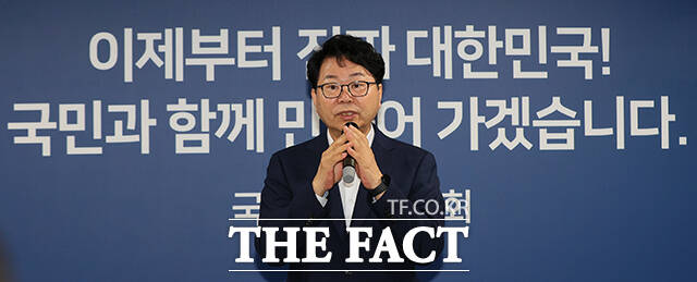[더팩트ㅣ박헌우 기자] 이한주 국정기획위원장이 14일 서울 종로구 정부서울청사 창성동 별관에서 열린 국정기획위원회 해단식에 참석해 인사말을 하고 있다.
