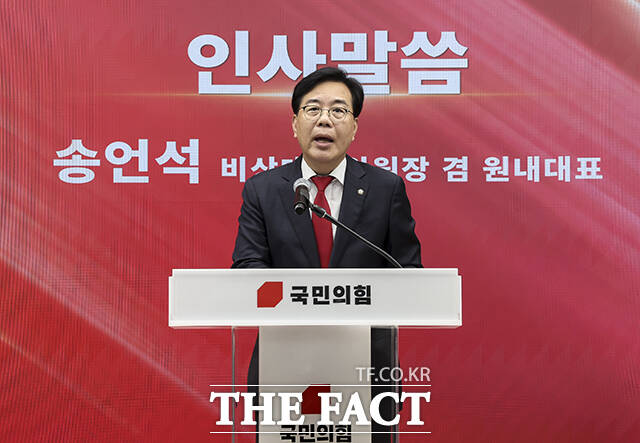 송언석 국민의힘 비상대책위원장은 이날 합동연설회 개회사에서 "이재명 정권의 충견을 자청하는 특검이 이곳 중앙당사에 들이닥쳤다"며 "500만 명에 이르는 우리 당원 명부를 내노라고 요구했다"고 했다.