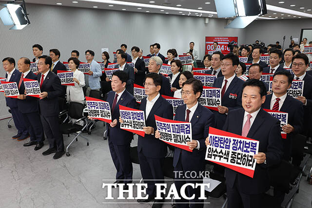 그러면서 "국민의힘은 이재명 정권과 특검의 어떠한 탄압에도 결코 굴하지 않겠다"며 "무도한 정권이 제 아무리 정치 보복의 칼을 휘둘러도 결코 우리를 굴복 시킬 수 없을 것"이라고 목소리 높였다.