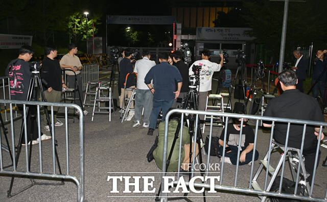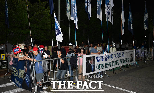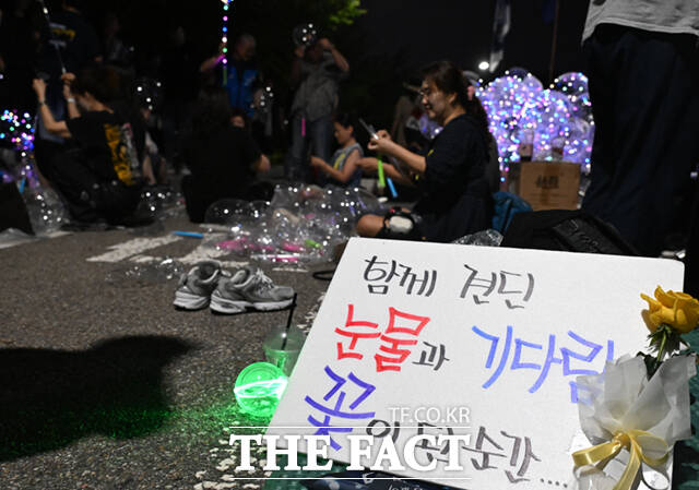 [더팩트ㅣ이새롬 기자] 조국 전 조국혁신당 대표가 광복절 특별 사면으로 출소를 앞둔 가운데, 14일 밤 서울 구로구 서울남부교도소 앞에 조 전 대표를 기다리는 지지자들이 모여있다.