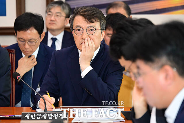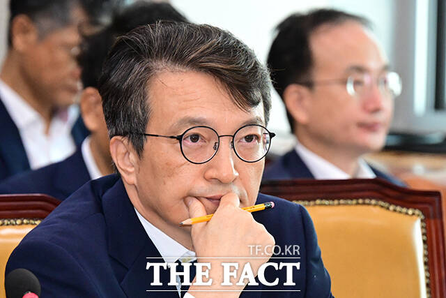 [더팩트ㅣ국회=남윤호 기자] 김의겸 새만금개발청장이 19일 오전 서울 여의도 국회에서 열린 국토교통위원회 전체회의 출석해 국토부에 대한 위원 질의를 들으며 생각에 잠겨있다.