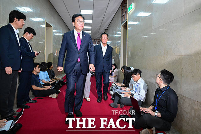 [더팩트ㅣ국회=남윤호 기자] 송언석 국민의힘 비상대책위원장 겸 원내대표를 비롯한 의원들이 19일 오전 서울 여의도 국회 의장실을 방문하고 있다.