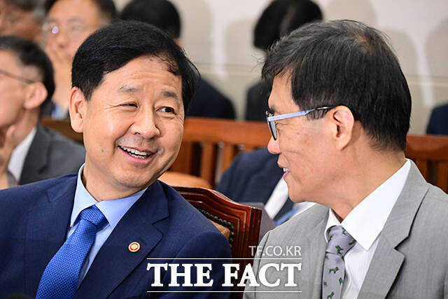 '의석에서 피감 기관 자리로' 임광현 국세청장 환영하는 구윤철·이창용 [TF사진관]