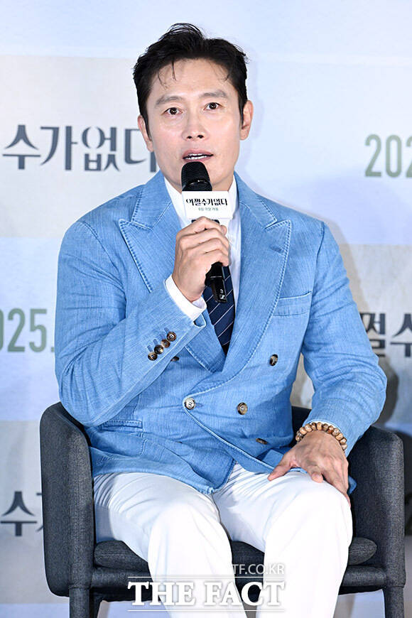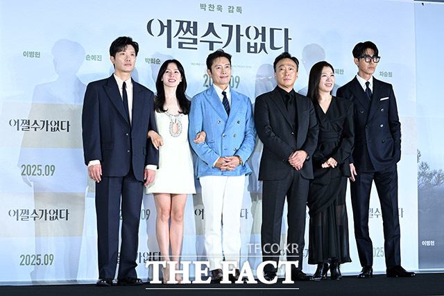 [더팩트ㅣ남용희 기자] 배우 박희순과 손예진, 이병헌, 박찬욱 감독, 이성민, 염혜란, 차승원이 19일 오전 서울 용산구 CGV 용산 아이파크몰에서 열린 영화 '어쩔수가없다' 제작보고회에 참석해 포즈를 취하고 있다.