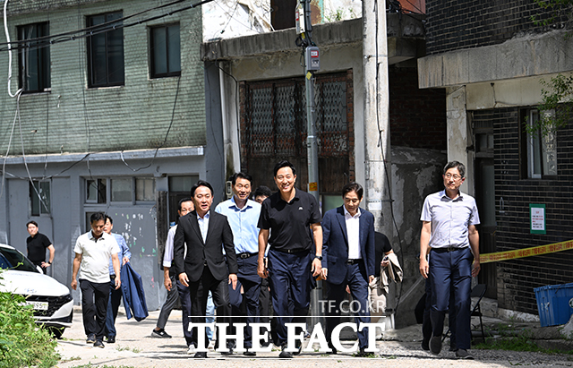 [더팩트ㅣ박헌우 기자] 오세훈 서울시장이 19일 오후 서울 서대문구 현저동 모아타운을 방문하고 있다.