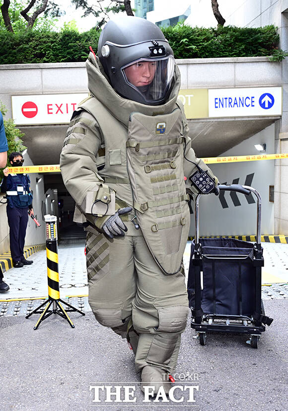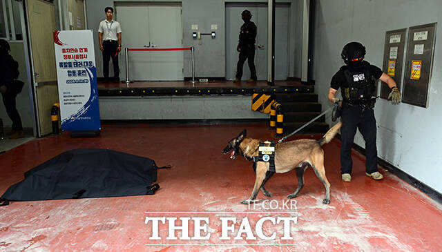 외교부 장관 앞으로 배달된 미상의 폭발물 택배를 가정해 보안 검색 판독훈련 뒤 경찰 특공대와 탐지견 군 폭발물 처리반(EOD)이 폭발물을 처리하는 훈련을 진행했다.