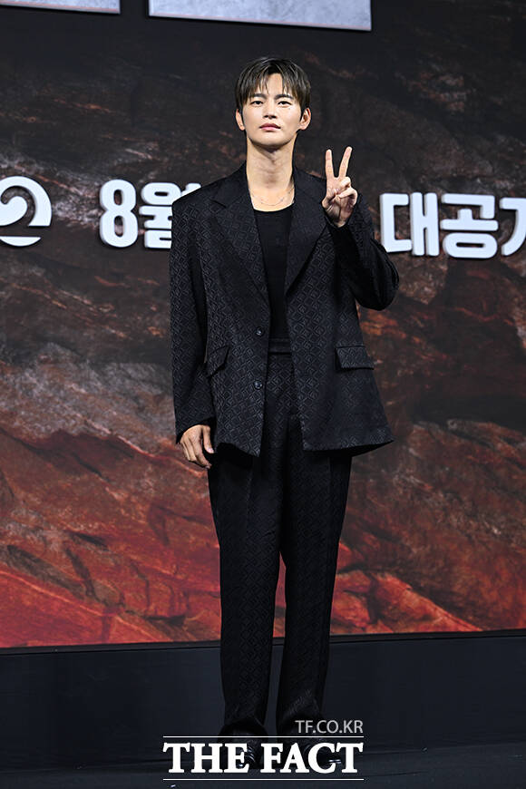 [더팩트ㅣ서예원 기자] 배우 마동석과 박형식, 레지나 레이, 성유빈, 안지혜, 이주빈, 서인국, 강미나(왼쪽부터)가 20일 오전 서울 중구 앰배서더 서울 풀만에서 열린 STUDIO X+U '트웰브' 제작발표회에 참석해 포즈를 취하고 있다.
