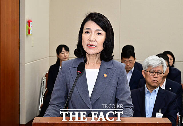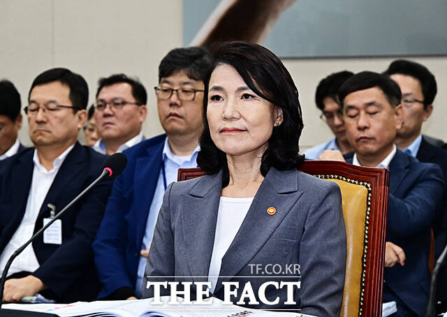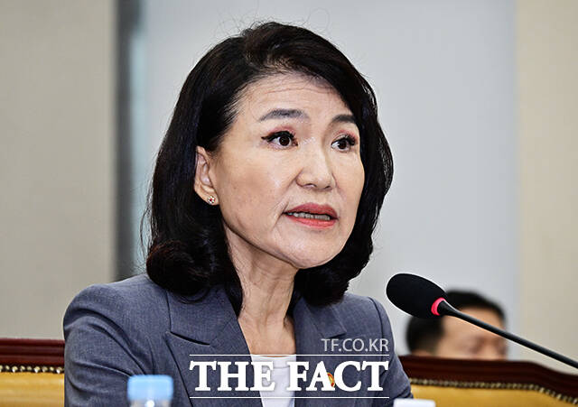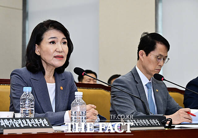 [더팩트ㅣ국회=배정한 기자] 이진숙 방송통신위원장이 20일 오전 서울 여의도 국회에서 열린 과학기술정보방송통신위원회 전체회의에 참석해 의원들의 질의에 답변을 하고 있다.