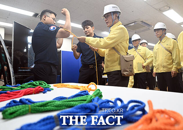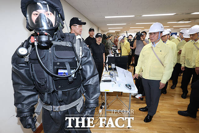 민방위 훈련 참가해 안전교육 실습하는 김민석 국무총리 [TF사진관]