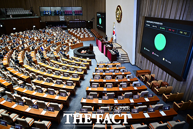 [더팩트ㅣ국회=배정한 기자] 우원식 국회의장이 21일 오전 서울 여의도 국회에서 열린 본회의에 참석해 방송문화진흥회법 일부개정법률안(대안)이 가결됐음을 선언하고 있다.