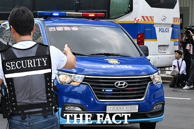 [더팩트ㅣ서예원 기자] 자본시장법 위반 등 혐의로 구속 수감된 윤석열 전 대통령 부인 김건희 씨가 21일 오후 서울 종로구 KT광화문빌딩 웨스트에 마련된 민중기 특검 사무실에 호송차를 타고 출석하고 있다.