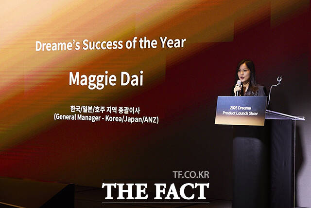 [더팩트ㅣ서예원 기자] 드리미 한국·일본·호주 지역 메기 다이 총괄이사가 21일 서울 종로구 광화문 포시즌스 호텔에서 열린 '2025 드리미 신제품 론칭쇼'에서 전략 메시지를 발표하고 있다.