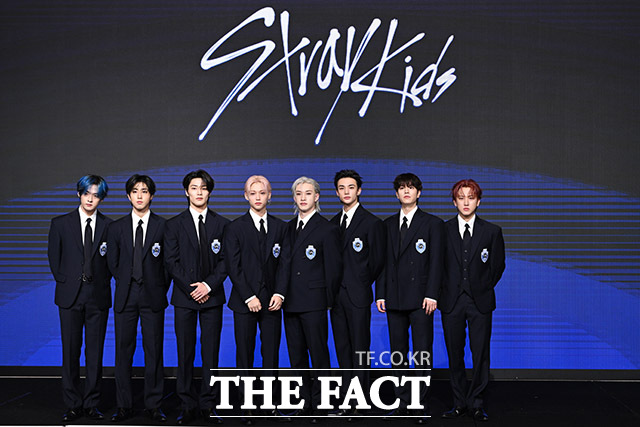 [더팩트ㅣ남용희 기자] 그룹 스트레이 키즈가 22일 오전 서울 여의도 콘래드 서울 호텔에서 열린 정규 4집 'KARMA(카르마)' 기자간담회에 참석해 포즈를 취하고 있다.