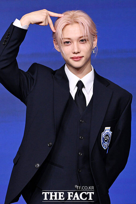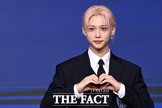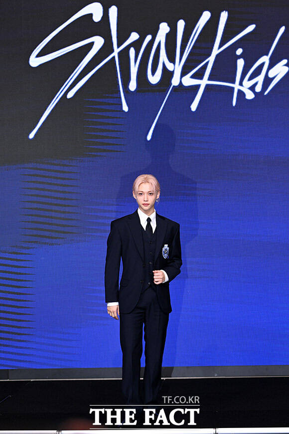 [더팩트ㅣ남용희 기자] 그룹 스트레이 키즈 필릭스가 22일 오전 서울 여의도 콘래드 서울 호텔에서 열린 정규 4집 'KARMA(카르마)' 기자간담회에 참석해 포즈를 취하고 있다.