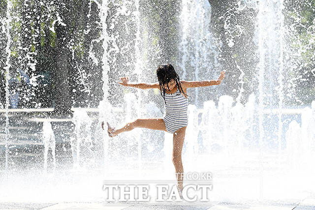[더팩트ㅣ서예원 기자] 더위가 가신다는 절기 '처서'를 하루 앞둔 22일 오후 서울 성동구 서울숲을 찾은 어린이가 바닥분수에서 즐거운 시간을 보내고 있다.