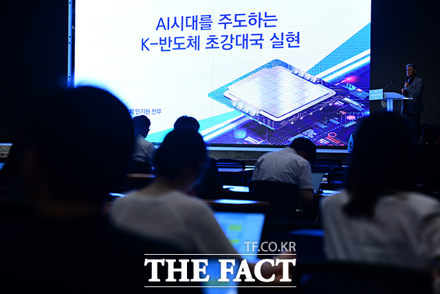 [더팩트ㅣ남윤호 기자] 안기현 한국반도체산업협회 전무가 26일 오후 서울 여의도 중소기업중앙회에서 열린 '제1회 더팩트미래전략포럼'에서 'AI 시대를 주도하는 K-반도체 초강대국 실현'을 주제로 특별강연하고 있다.
