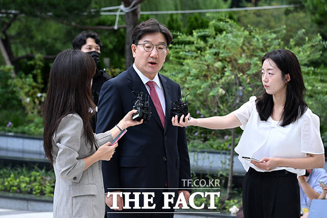 [더팩트ㅣ서예원 기자] 권성동 국민의힘 의원이 27일 오전 서울 종로구 KT광화문빌딩 웨스트에 마련된 민중기 특검 사무실에 출석하며 입장을 밝히고 있다.