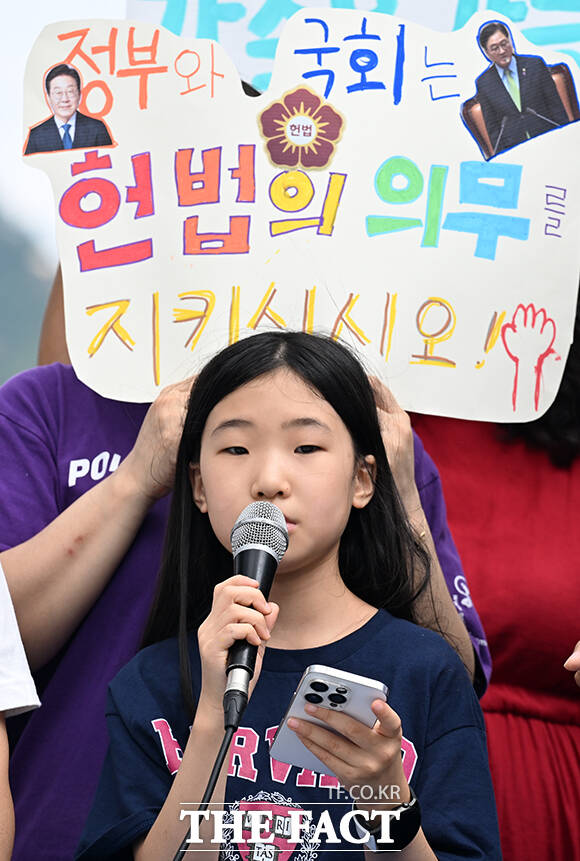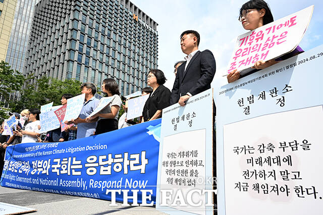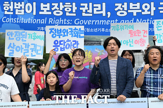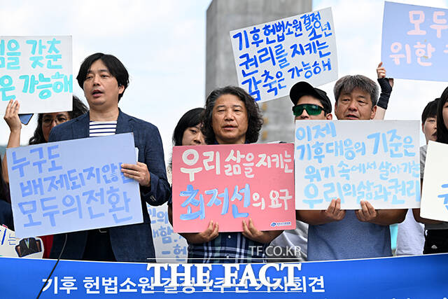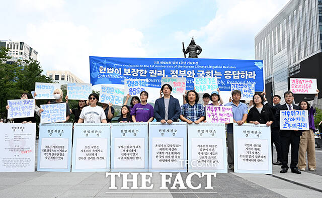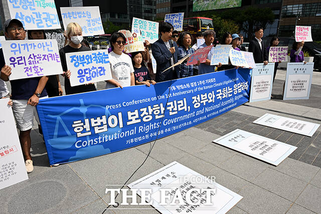 김한나 아기기후소송 청구인은 "지난해 우리의 목소리가 헌법으로 인정받아 희망을 봤지만, 지난 1년은 미래가 외면당한 시간이었다"며 "우리는 투표권이 없는 만큼 국가는 더 큰 책임감으로 우리를 지켜야 한다"고 말했다.