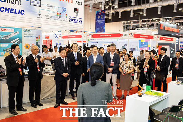 [더팩트ㅣ서예원 기자] 베트남 빈증무역센터 전시장에서 27일(현지시간)부터 3일간 개최되는 '제2회 베트남 스마트공장·자동화산업전'에 주요 인사들이 현지 참가 업체 부스에 방문하여 전시회를 둘러보고 있다.