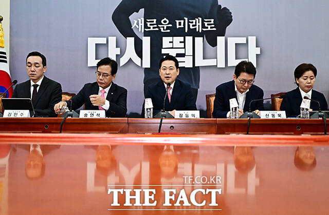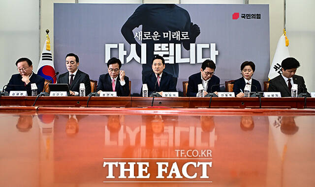 [더팩트ㅣ국회=배정한 기자] 장동혁 국민의힘 대표가 28일 오전 서울 여의도 국회에서 열린 최고위원회의에 참석해 모두발언을 하고 있다.