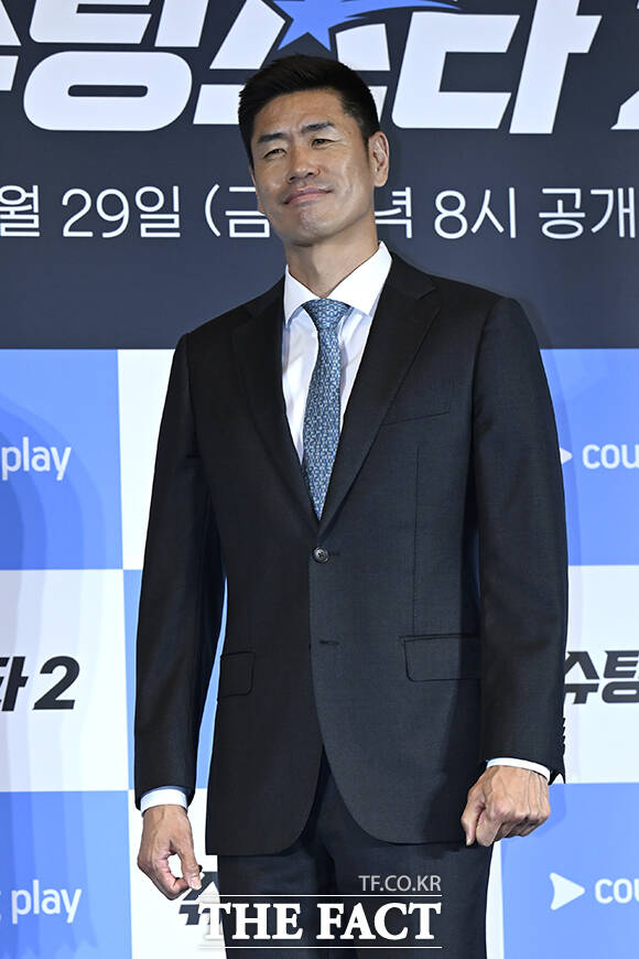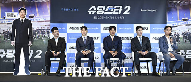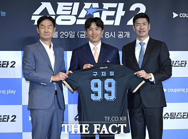 [더팩트ㅣ장윤석 기자] 최용수 감독과 축구선수 구자철, 이근호, 설기현 코치가 28일 오전 서울 구로구 더링크 호텔에서 열린 쿠팡플레이 새 예능 '슈팅스타2' 제작발표회에 참석해 포즈를 취하고 있다.