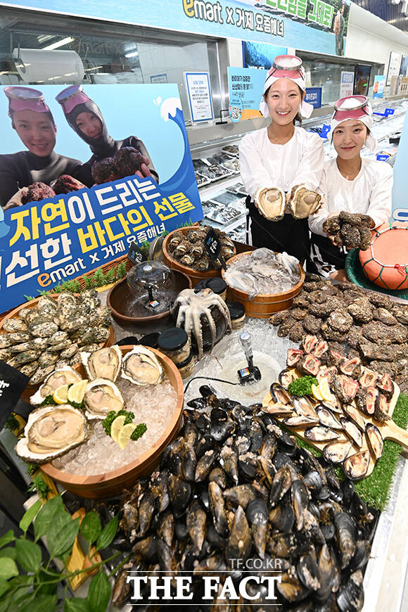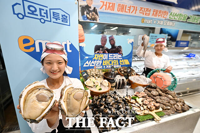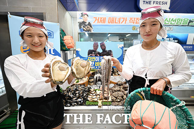 이마트는 '요즘 해녀'라는 명칭으로 활동하는 진소희, 우정민 거제해녀 인플루언서와 협업해 경남 거제시 덕포어촌계 해녀들이 직접 잡아올린 프리미엄 수산물을 단독 판매한다
