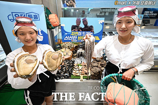 이마트는 '요즘 해녀'라는 명칭으로 활동하는 우정민, 진소희 거제해녀 인플루언서와 협업해 경남 거제시 덕포어촌계 해녀들이 직접 잡아올린 프리미엄 수산물을 단독 판매한다.