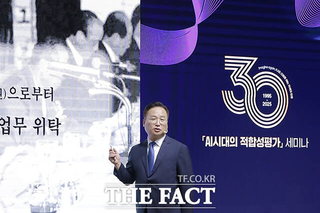 [더팩트ㅣ서예원 기자] 박진서 한국인정지원센터 대표가 28일 서울 강남구 보코호텔 강남에서 열린 한국인정지원센터 30주년 기념 행사에 참석해 미래비전을 발표하고 있다.