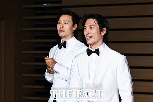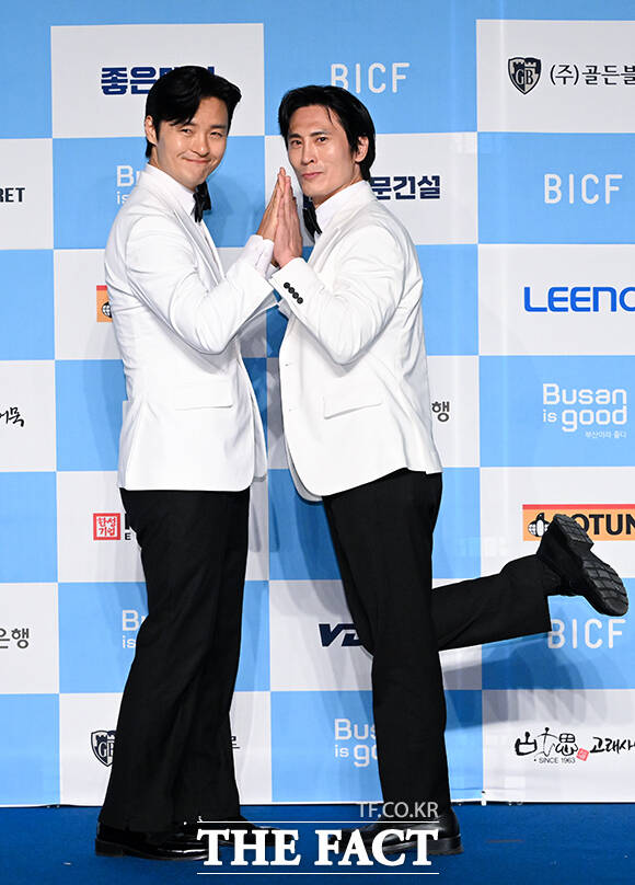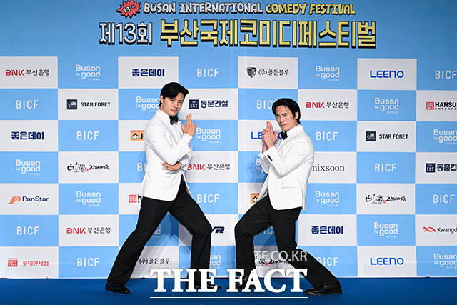 [더팩트ㅣ부산=서예원 기자] 코미디언 강완서(왼쪽)와 김재우가 29일 오후 부산 해운대구 벡스코 오디토리움에서 열린 '제13회 부산국제코미디페스티벌 블루카펫에 참석해 포즈를 취하고 있다.